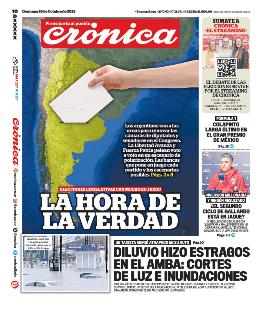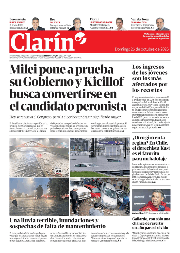 Tapas de los principales diarios nacionales de este domingo 26 de octubre 26 octubre, 202526 octubre, 2025 La Nación Clarín Página 12 Olé Crónica Perfil