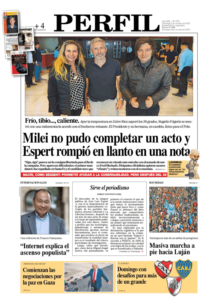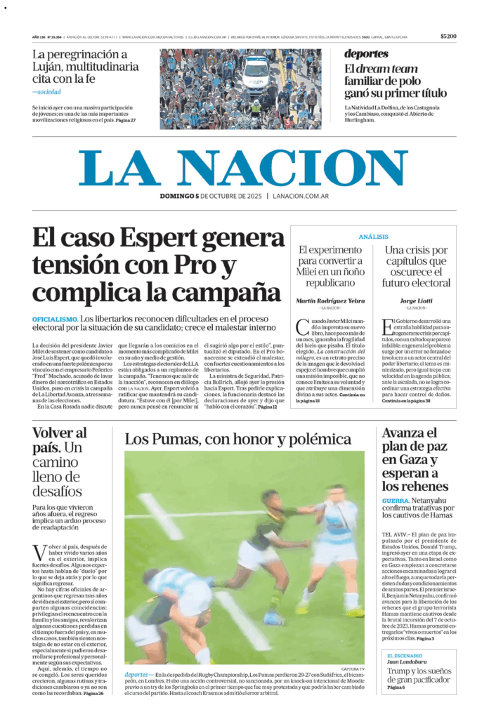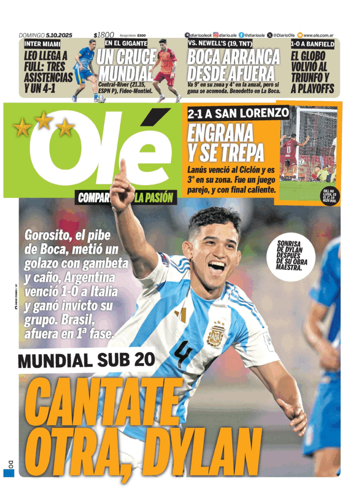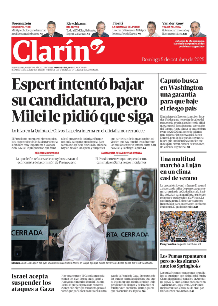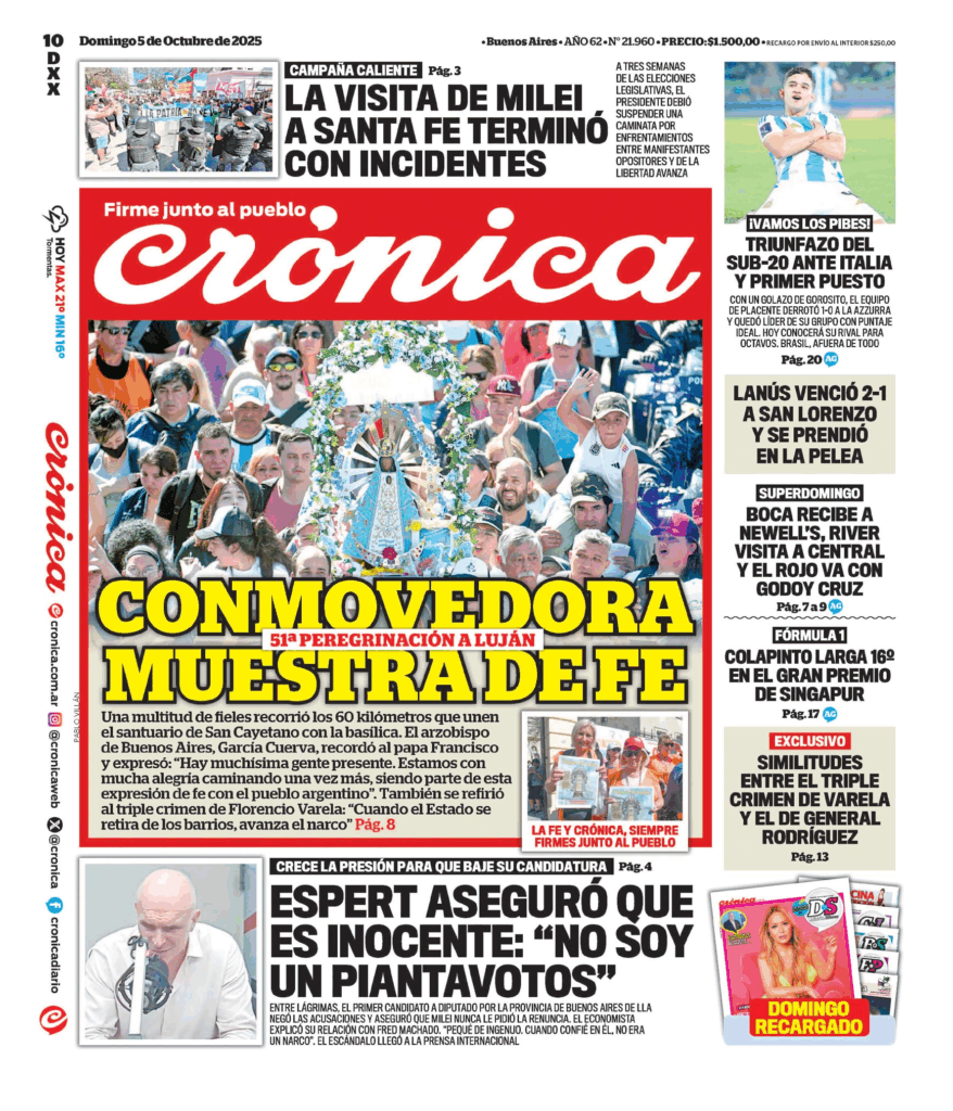 Tapas de los principales diarios nacionales de este domingo 5 de octubre 5 octubre, 20255 octubre, 2025 La Nación Clarín Página 12 Olé Crónica Perfil