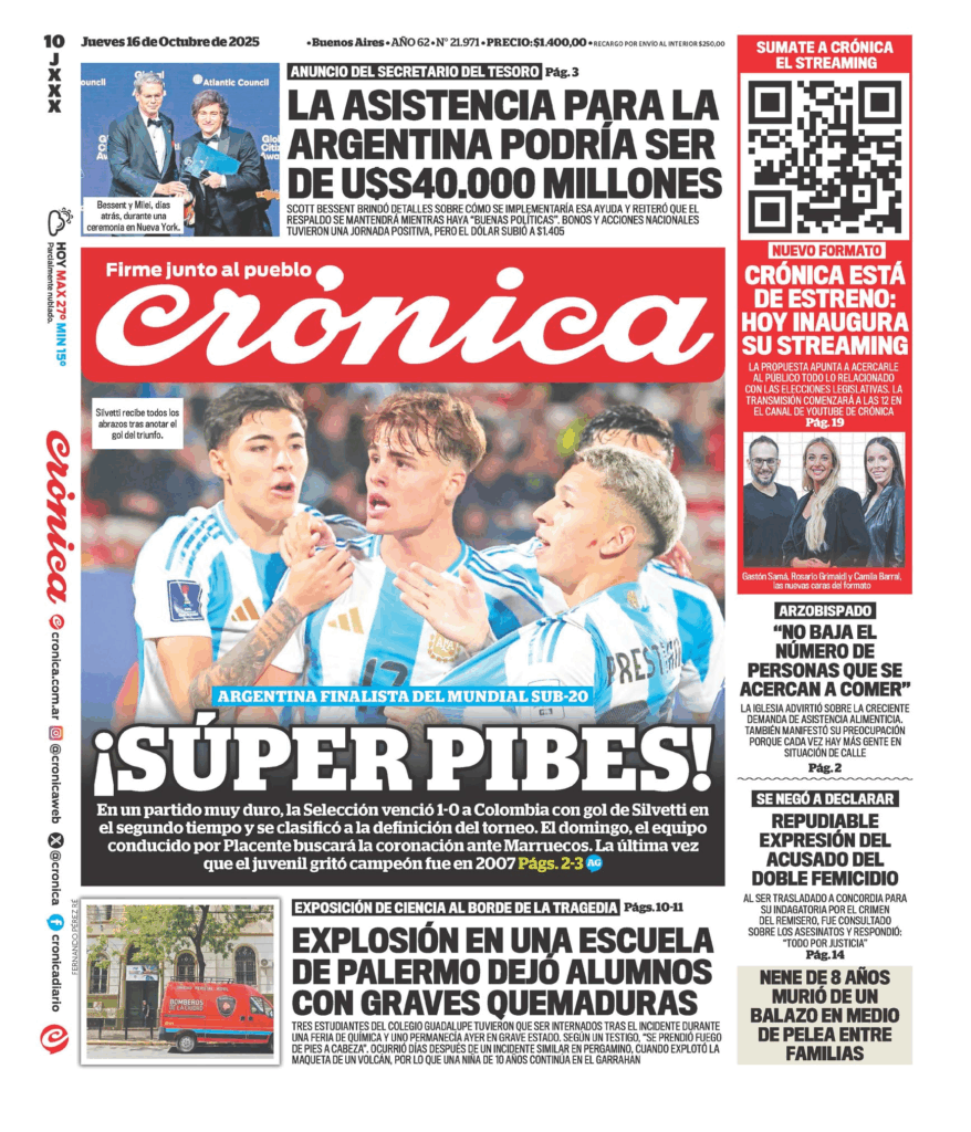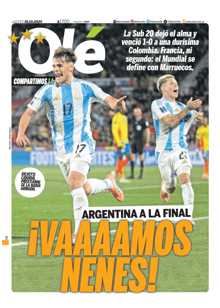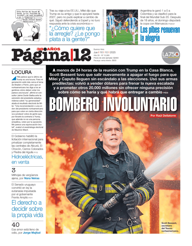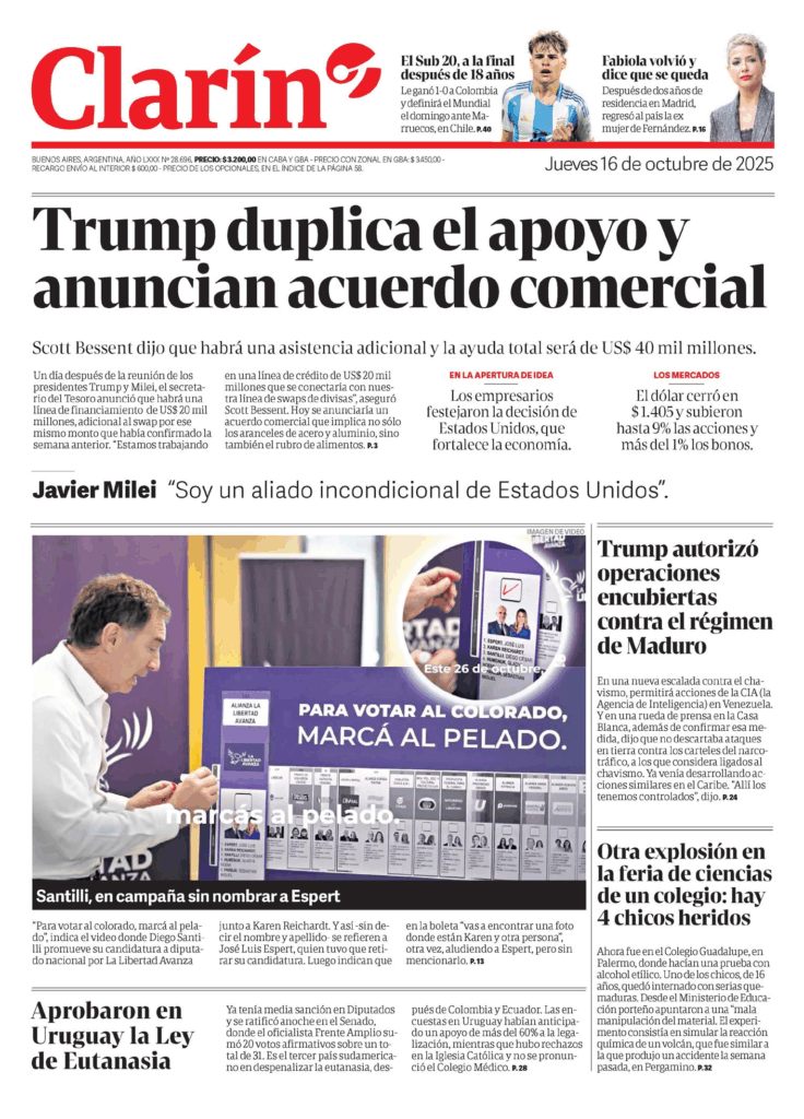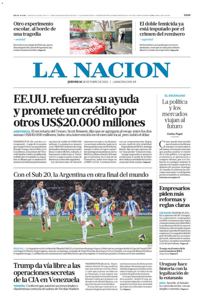 Tapas de los principales diarios nacionales de este jueves 16 de octubre 16 octubre, 202516 octubre, 2025 La Nación Clarín Página 12 Olé Crónica