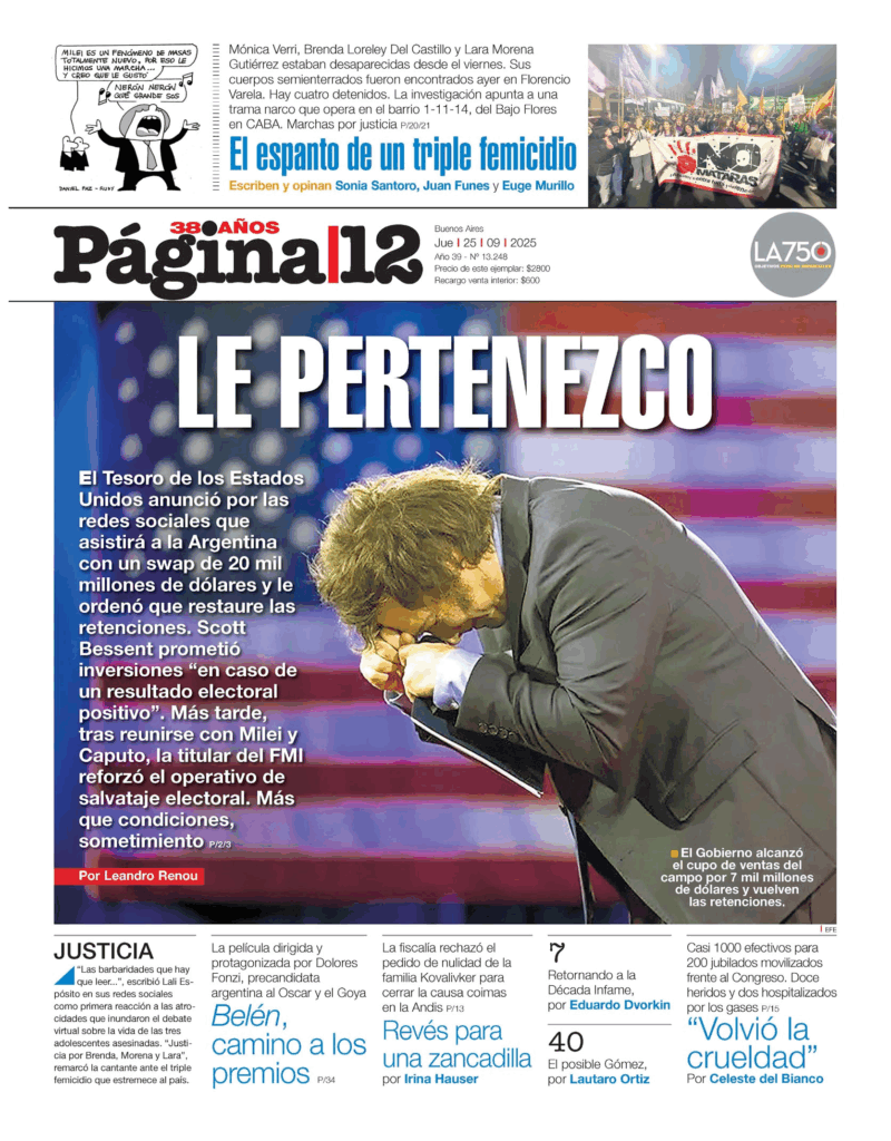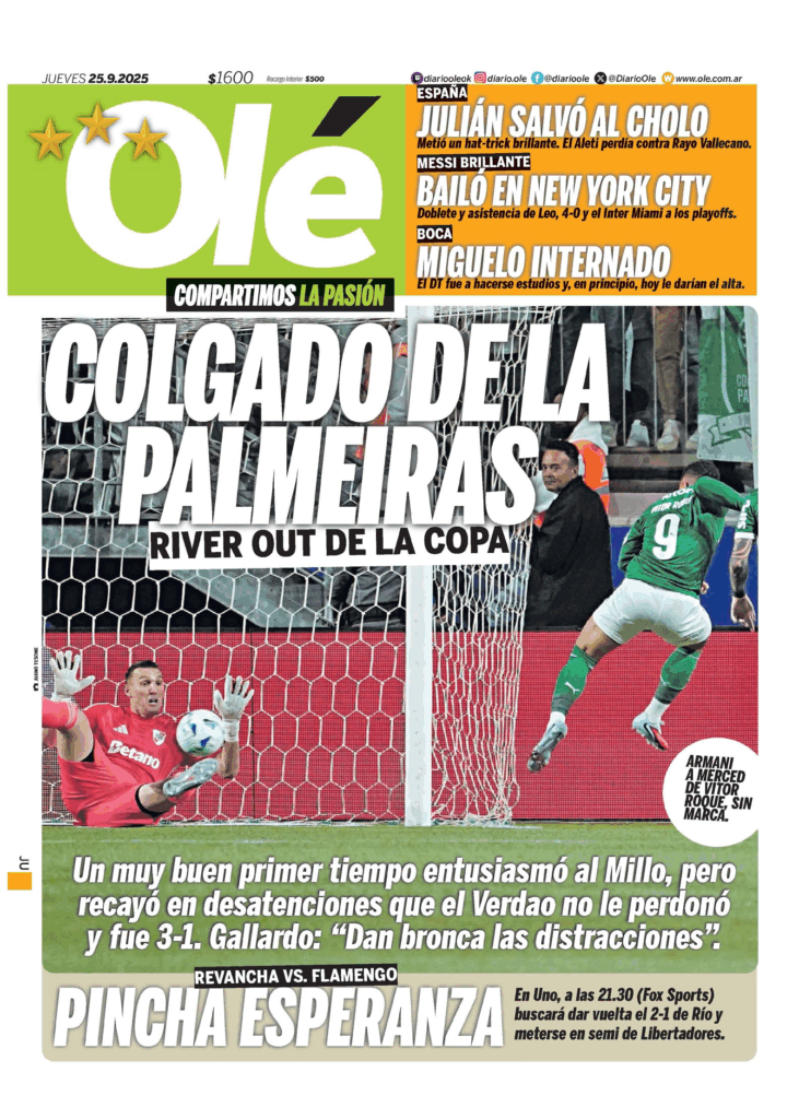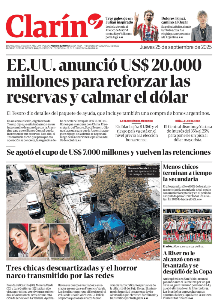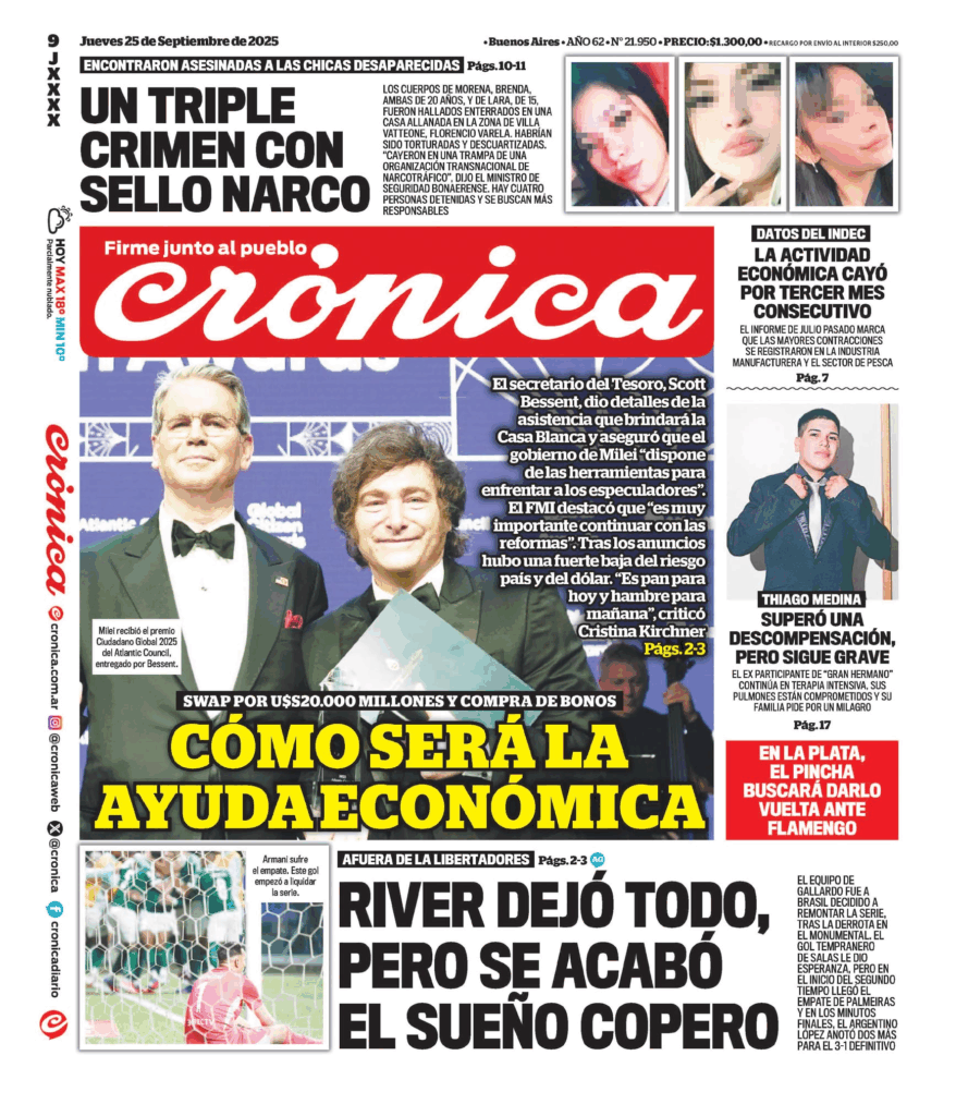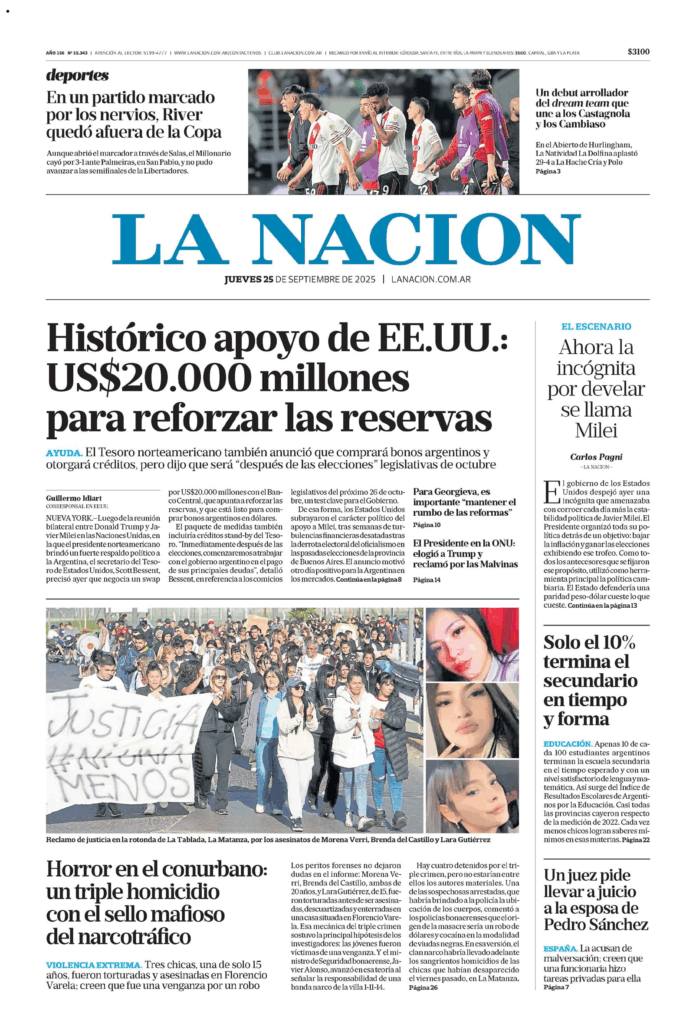 Tapas de los principales diarios nacionales de este jueves 25 de septiembre 25 septiembre, 202525 septiembre, 2025 La Nación Clarín Página 12 Olé Crónica