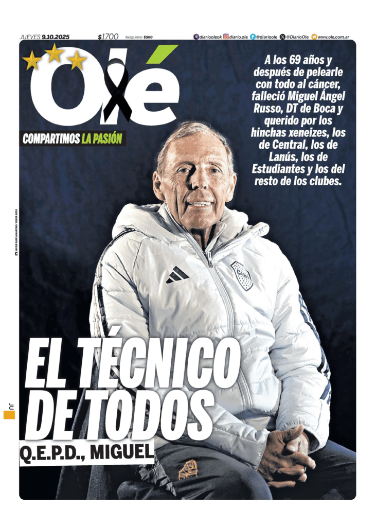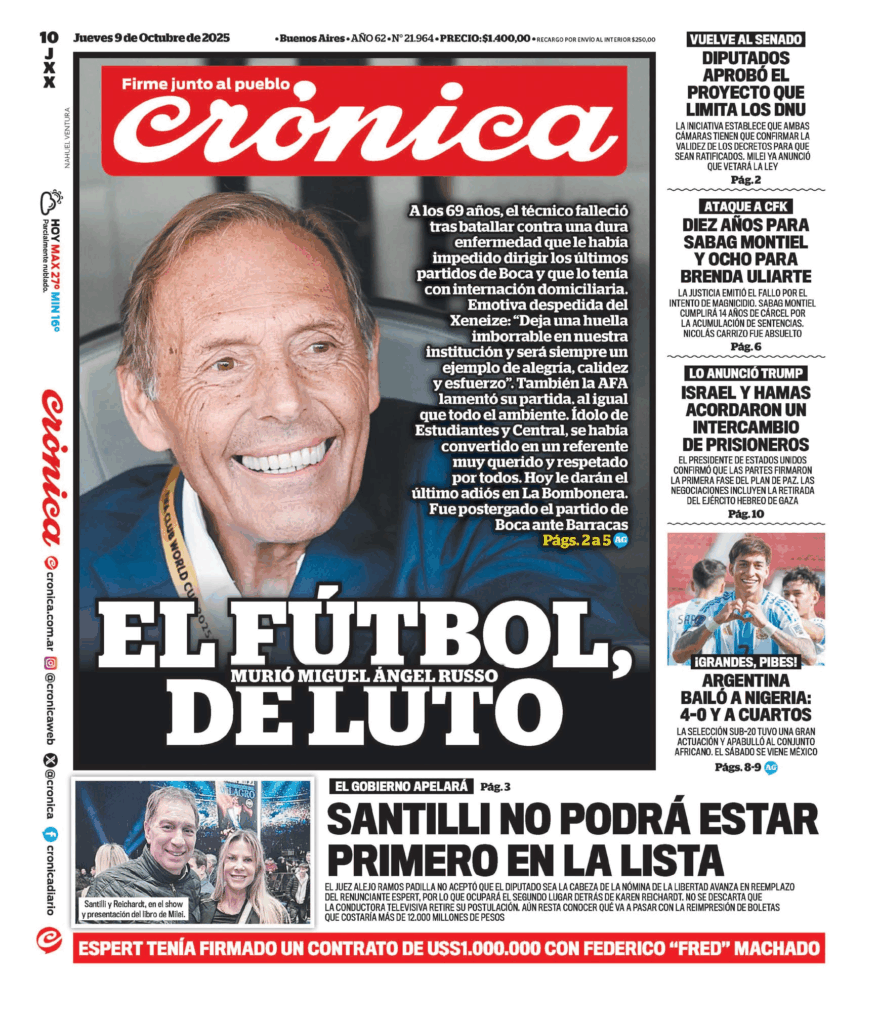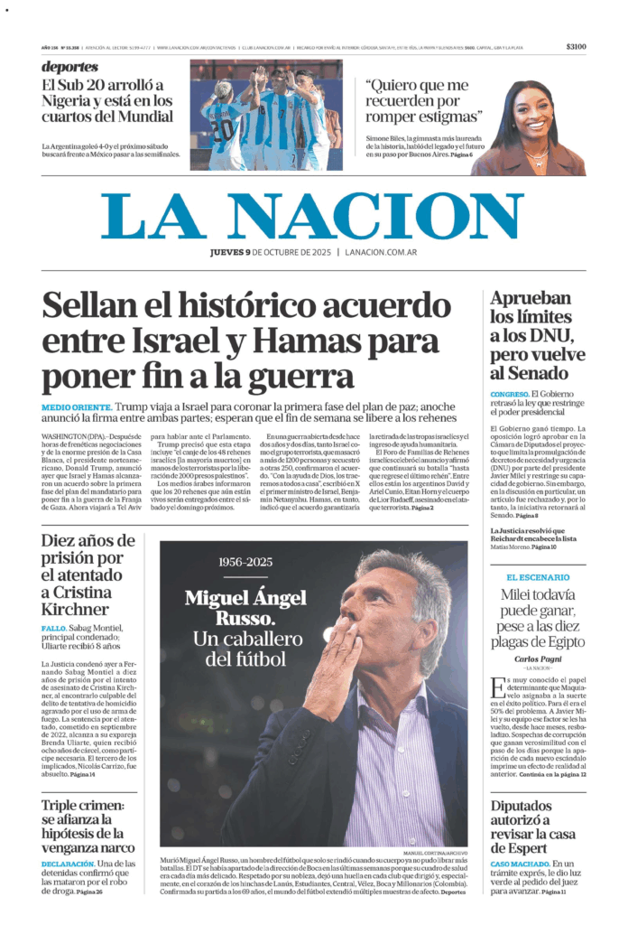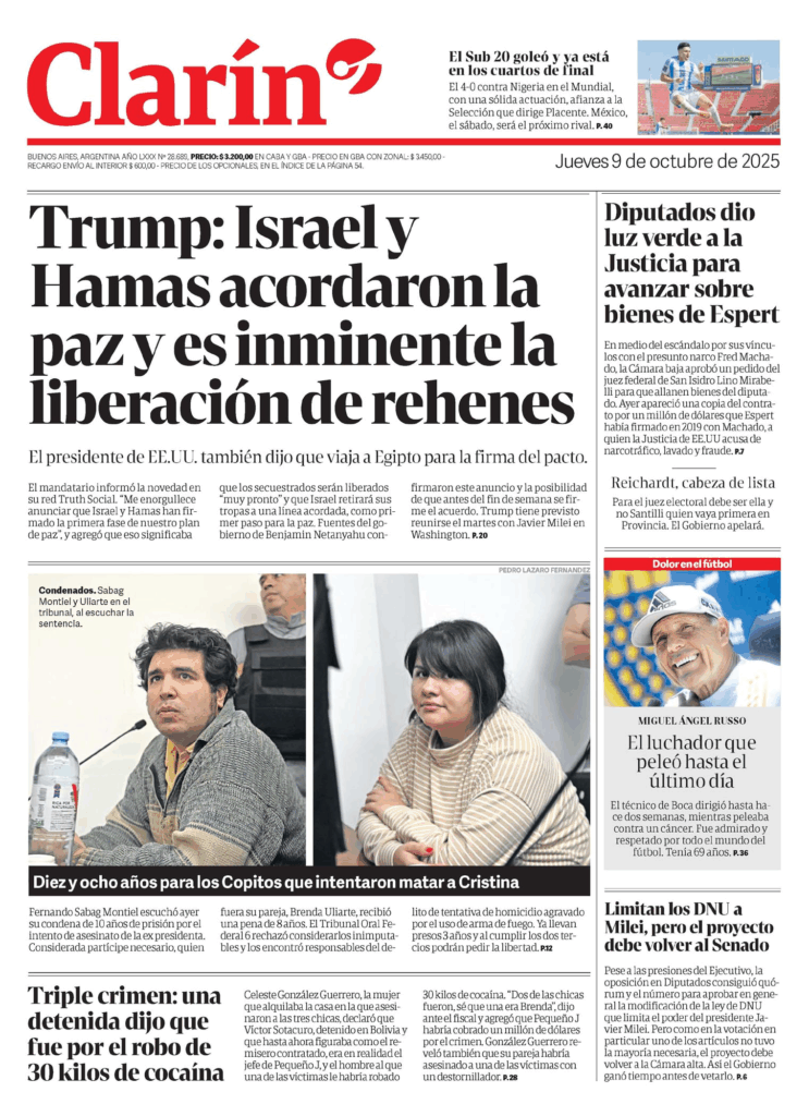 Tapas de los principales diarios nacionales de este jueves 9 de octubre 9 octubre, 20259 octubre, 2025 La Nación Clarín Página 12 Olé Crónica