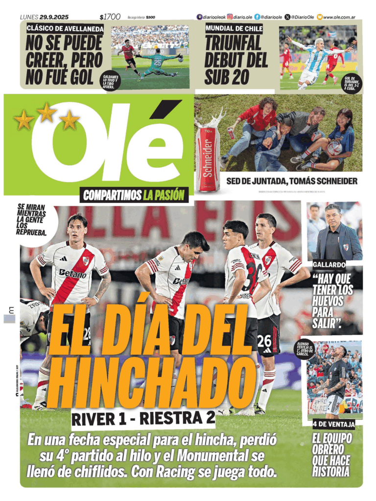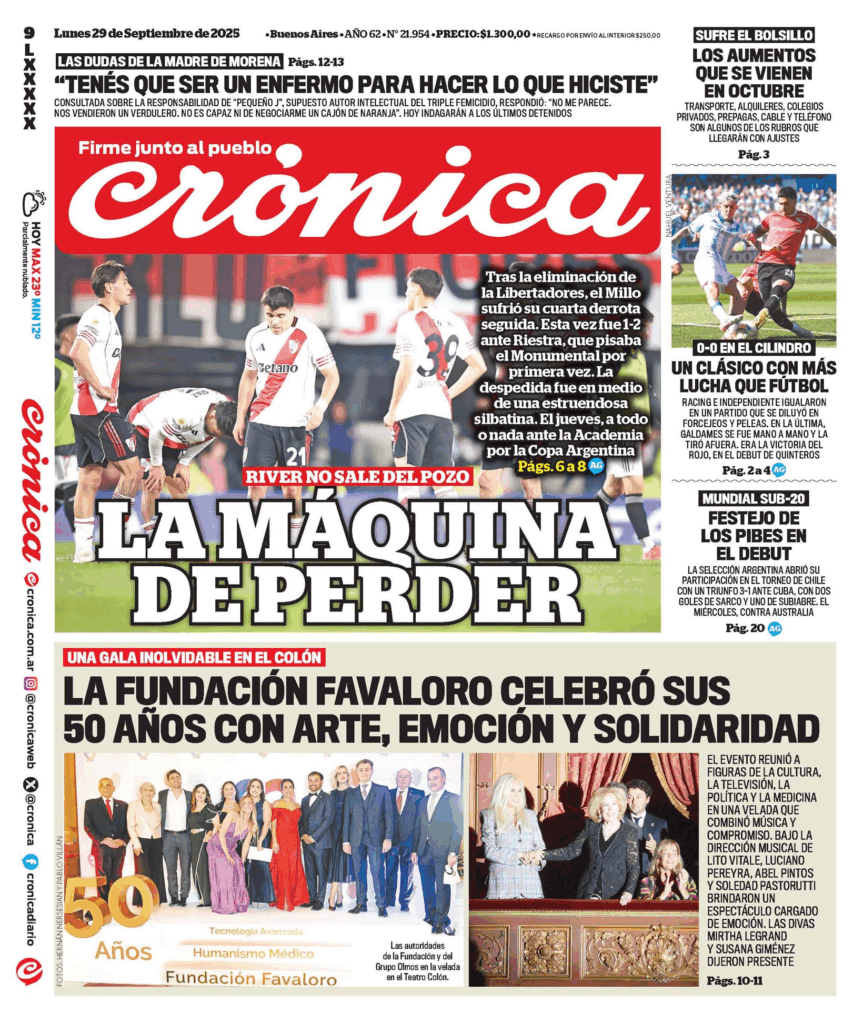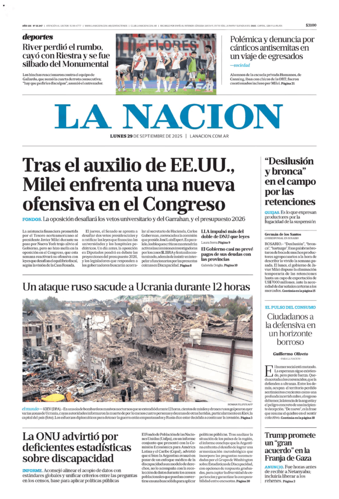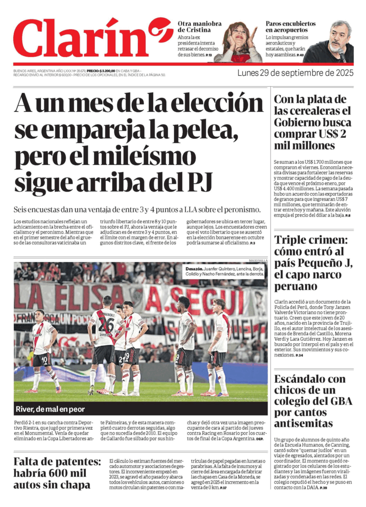 Tapas de los principales diarios nacionales de este lunes 29 de septiembre 29 septiembre, 202529 septiembre, 2025 La Nación Clarín Página 12 Olé Crónica