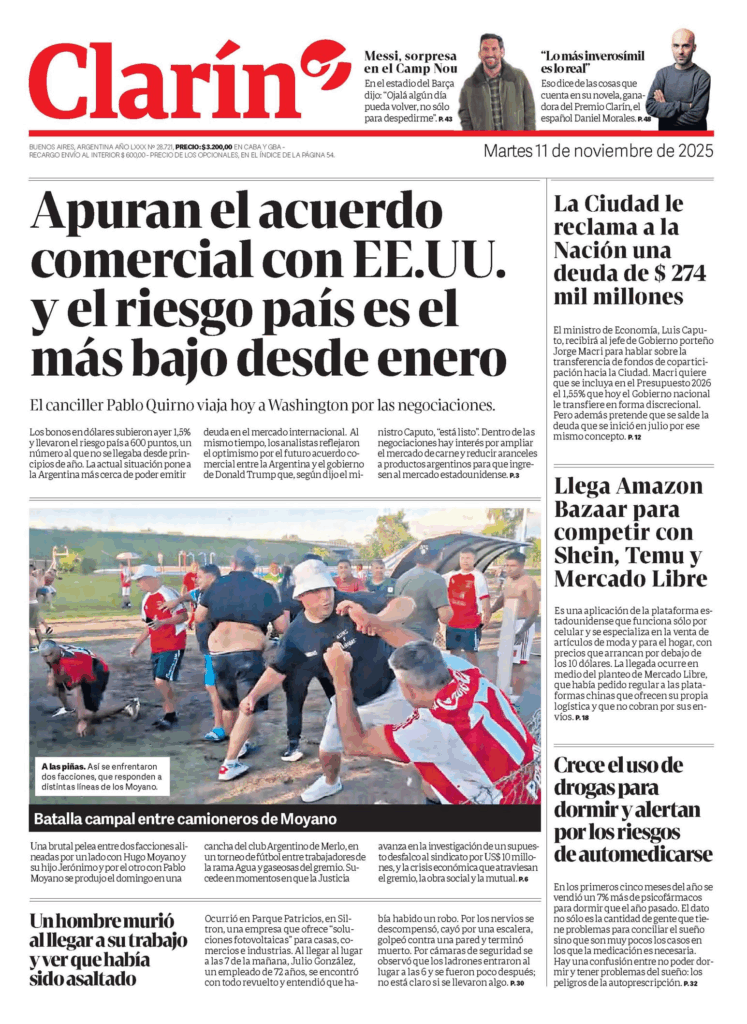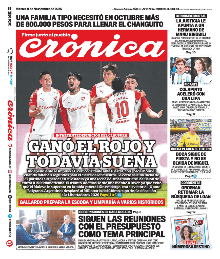 Tapas de los principales diarios nacionales de este martes 11 de noviembre 11 noviembre, 202511 noviembre, 2025 La Nación Clarín Página 12 Olé Crónica