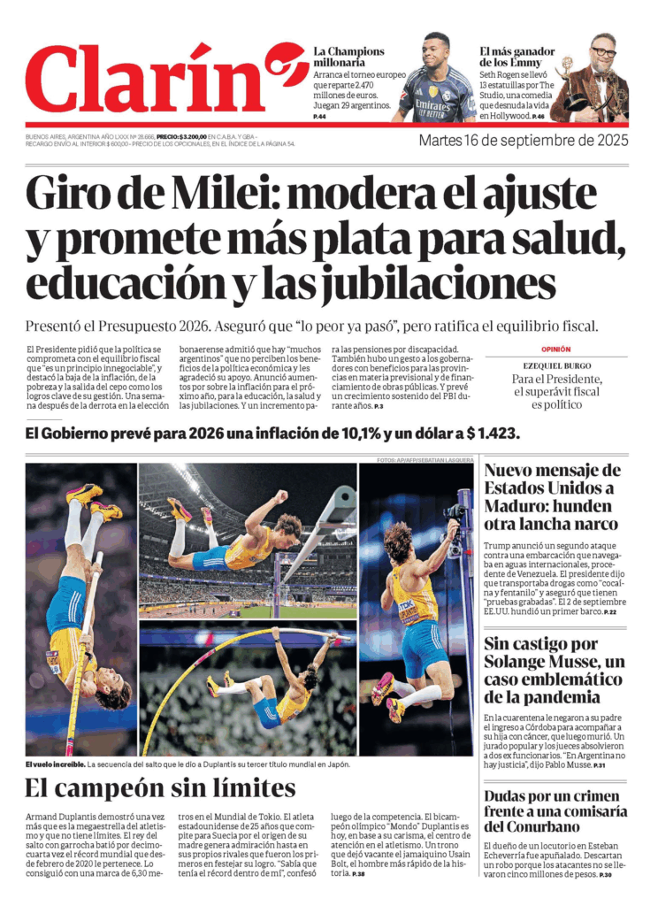 Tapas de los principales diarios nacionales de este martes 16 de septiembre