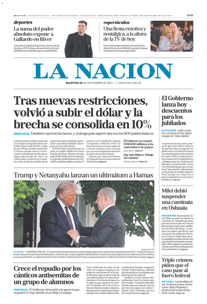 Tapas de los principales diarios nacionales de este martes 30 de septiembre