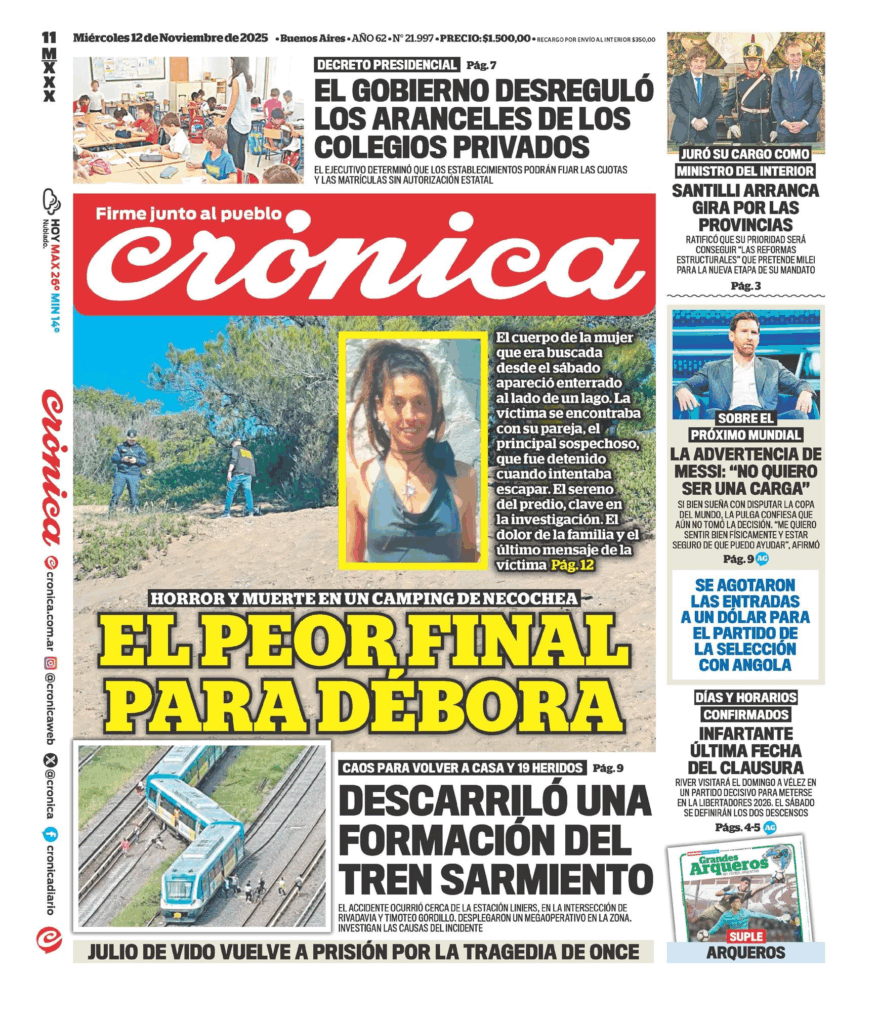 Tapas de los principales diarios nacionales de este miércoles 12 de noviembre 12 noviembre, 202512 noviembre, 2025 La Nación Clarín Página 12 Olé Crónica