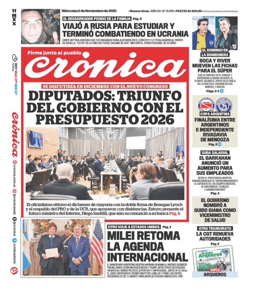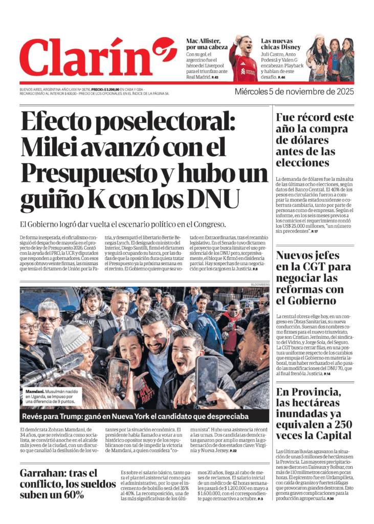 Tapas de los principales diarios nacionales de este miércoles 5 de noviembre