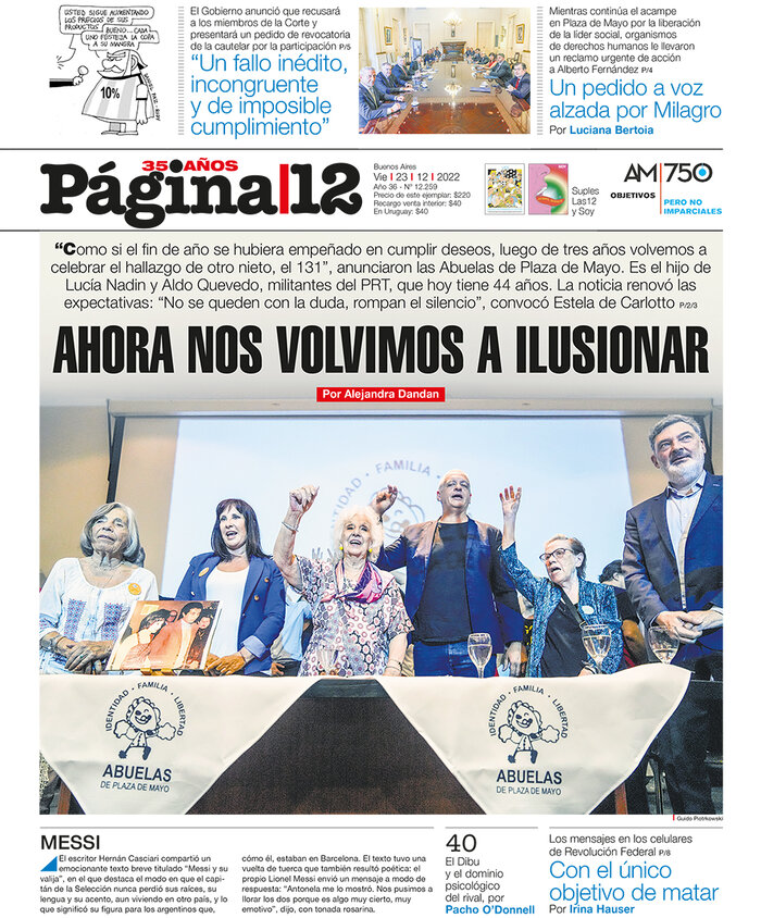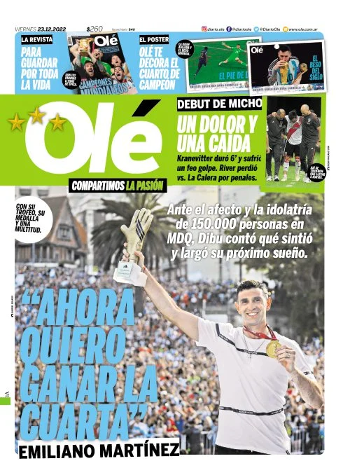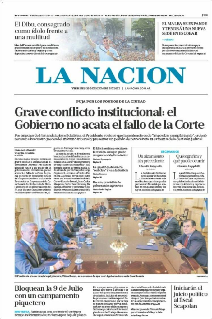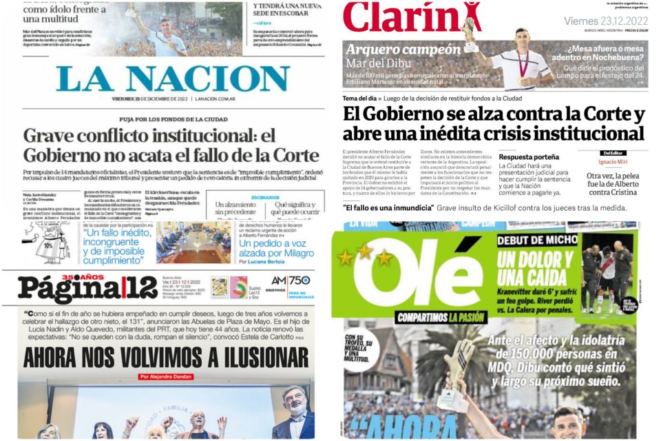 Tapas de los principales diarios nacionales de este viernes 23 de diciembre 23 diciembre, 202223 diciembre, 2022 La Nación Clarín Página 12 Olé