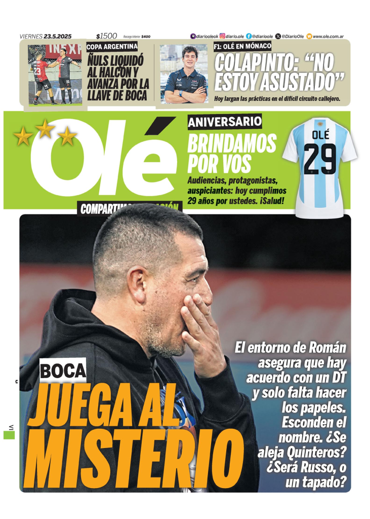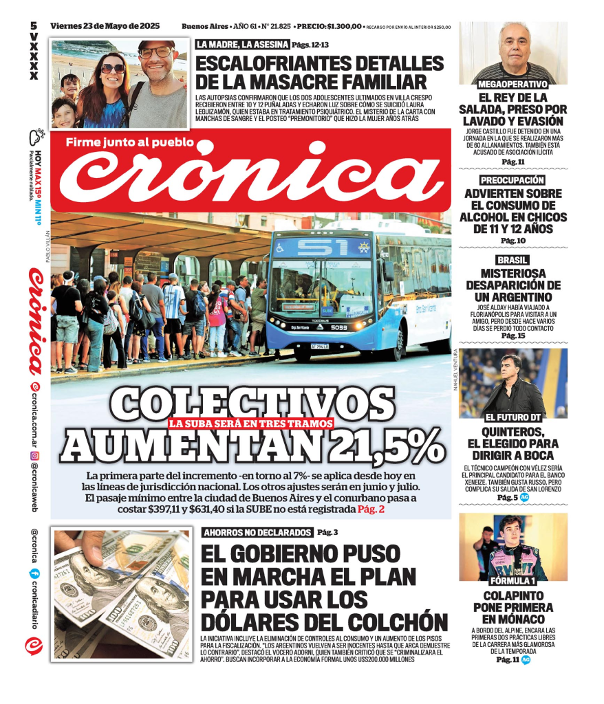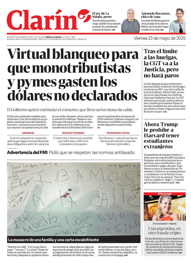 Tapas de los principales diarios nacionales de este viernes 23 de mayo 23 mayo, 202523 mayo, 2025 La Nación Clarín Página 12 Olé Crónica El Cronista