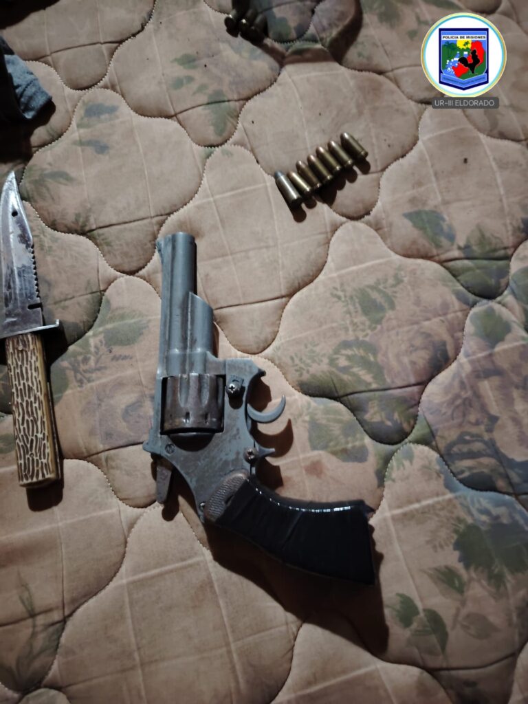 Durante el procedimiento, los investigadores secuestraron un revólver calibre .22, nueve proyectiles calibre 9 mm, una bala de fusil FAL 7,62 mm y una vaina servida calibre .32, además de otros elementos vinculados al hecho. El acusado fue detenido en el lugar y puesto a disposición del Juzgado de Instrucción interviniente.
