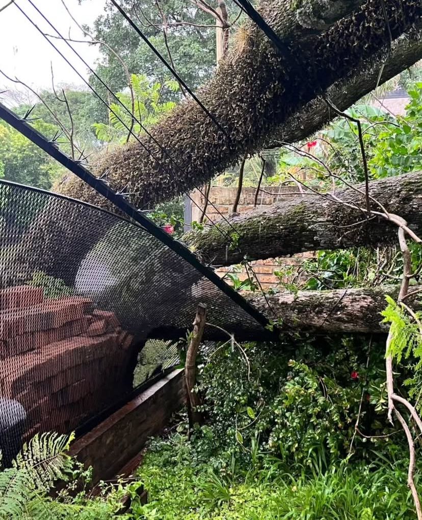 Una situación de mayor gravedad fue atendida por la Comisaría 13ª, donde un árbol de gran porte cayó sobre el techo de una vivienda en el ch. 242, calle 125. Si bien no hubo heridos, el propietario manifestó su preocupación debido a la presencia de cables sueltos en el lugar, por lo que se solicitó personal especializado.