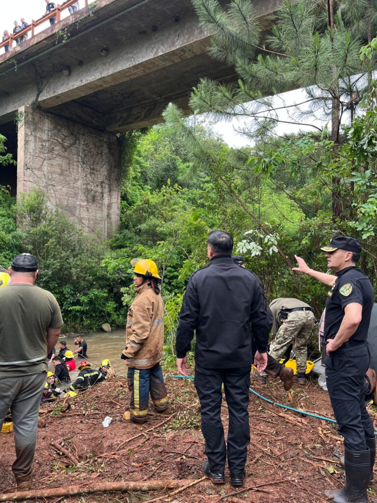Desde las primeras horas de la madrugada, más de 150 efectivos policiales, junto a Bomberos de la Policía y Voluntarios, personal de Salud Pública y otros organismos del Gobierno provincial, continúan trabajando intensamente en el lugar para asistir a las víctimas, remover los vehículos y rescatar a personas que aún permanecen dentro del colectivo.