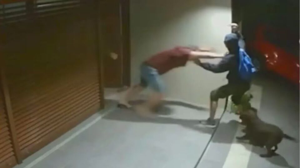 El chico estaba entrando a su casa y fue asaltado por un ladrón armado con un cuchillo. Su papá no dudó y lo quiero resguardar. El dramático momento quedó grabado.