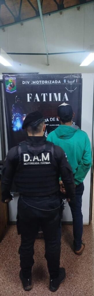 Minutos después, en el barrio La Cima, los integrantes de la División Motorizada Itaembé Miní detuvieron a Maximiliano G. (20), residente del barrio Belén. El joven fue interceptado en la intersección de las calles 156 Bis y 141, mientras transportaba una caja con 21 paquetes cerrados de alimentos, todos rotulados y cerrados con precios, sin poder justificar su propiedad ni procedencia. Los elementos fueron secuestrados y el demorado fue puesto a disposición de la comisaría correspondiente.