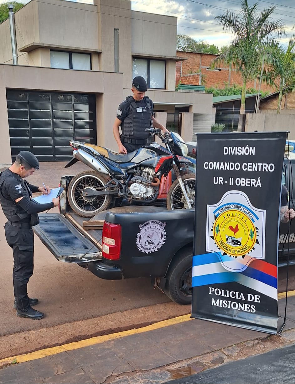Por otro lado, también en esta tarde de jueves, un joven denunció el robo de su motocicleta Corven Triax 200 cc, que había dejado estacionada frente a su casa en la calle Sarratea de Oberá. Minutos después, una llamada telefónica anónima alertó a la Policía sobre la presencia de dos hombres que ocultaban una moto entre la maleza detrás del aserradero del Aeroclub local. De inmediato, una comisión del Comando realizó un rastrillaje y logró hallar la motocicleta sustraída, que fue secuestrada y trasladada a la dependencia para las pericias correspondientes.