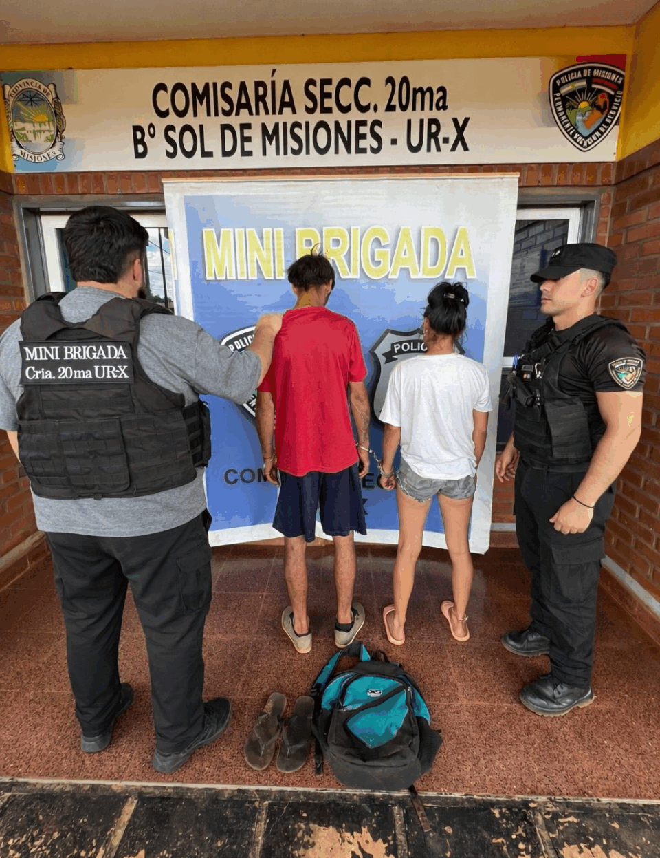 Como resultado, se procedió a la detención del hombre de 33 años en el Asentamiento Los Oleritos, tras autorización de ingreso domiciliario, y minutos después a la detención de la mujer de 26 años en el barrio Sol de Misiones, también con consentimiento del propietario del inmueble. Ambos fueron examinados por personal médico y trasladados a la dependencia policial, mientras que parte de los elementos sustraídos fueron recuperados y quedaron a disposición de la Justicia interviniente.