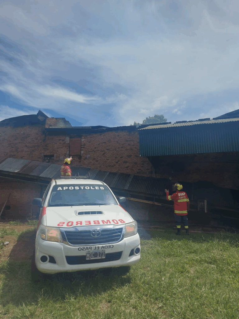 Un incendio registrado esta tarde en un secadero agrícola del Lote 212, en la colonia Las Tunas de Apóstoles, generó daños materiales en el sector superior de la estructura, sin que se registraran personas lesionadas. La Policía y dotaciones de bomberos trabajaron rápidamente para evitar que el fuego se propagara.
