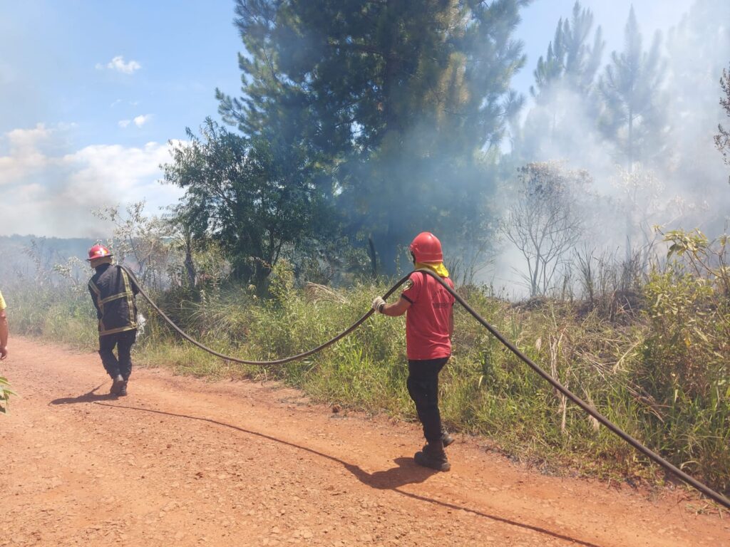 El foco ígneo se desarrolló en los lotes N° 42 y N° 50, donde las llamas avanzaron sobre una superficie estimada en unas 10 hectáreas. Ante el aviso, se comisionó al personal de Bomberos de Santa Ana, quienes trabajaron intensamente en el lugar para controlar y sofocar el fuego.