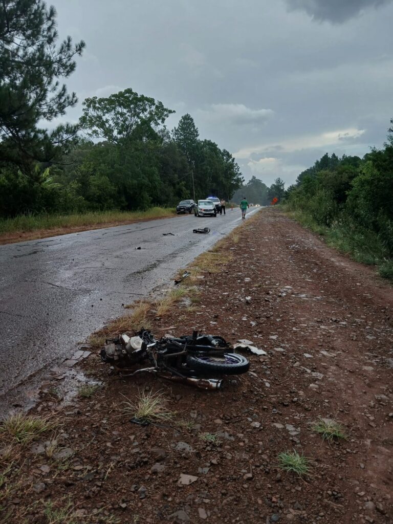 Un siniestro vial ocurrido hoy a las 18:30 horas sobre la Ruta Provincial N° 6, a unos 600 metros de la Ruta Nacional 12, dejó como saldo dos personas fallecidas. Por causas que se investigan, colisionaron una motocicleta Motomel 110cc y un automóvil Fiat Cronos.