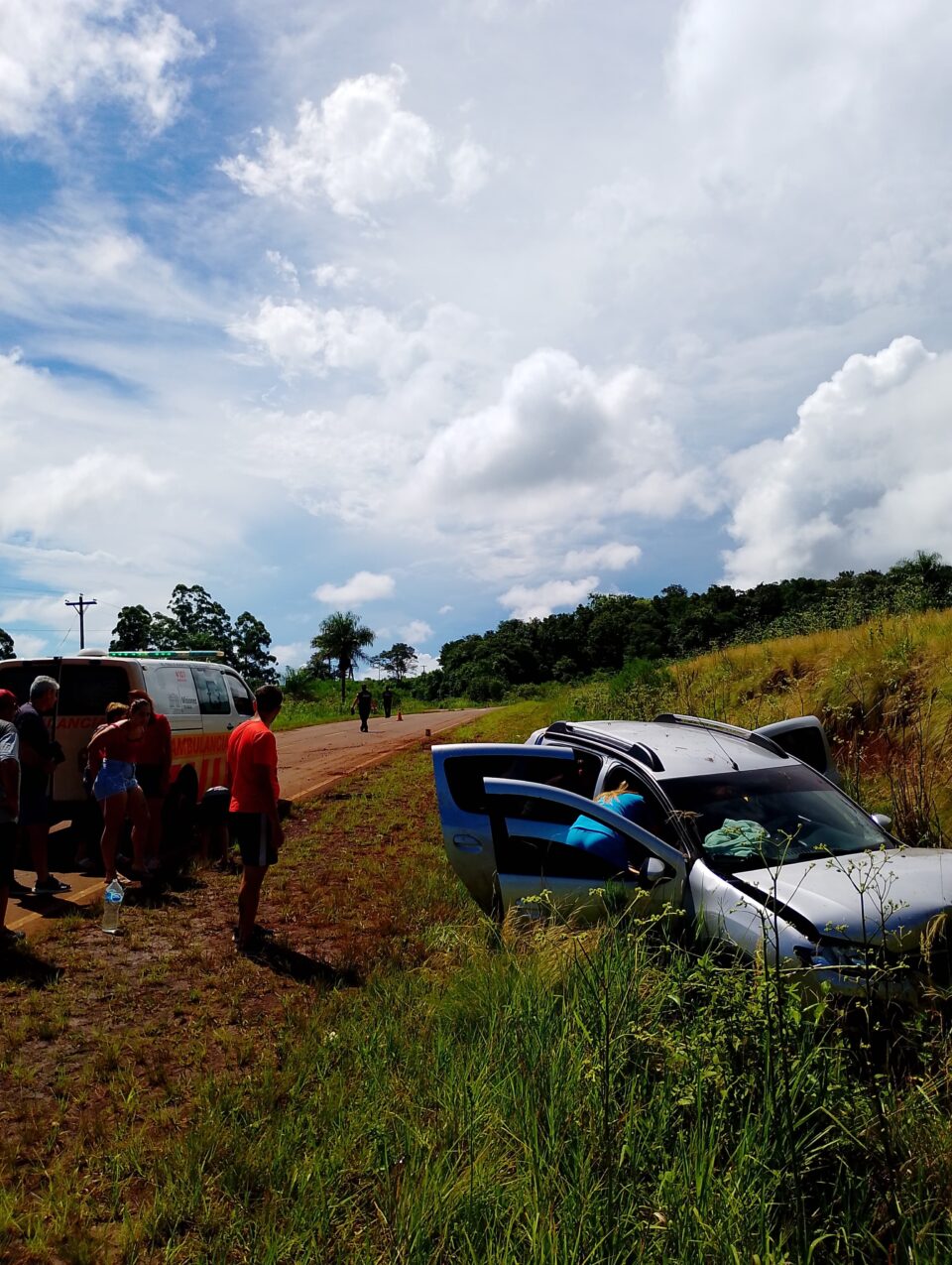 El siniestro involucró a un vehículo Renault, color gris, dominio AC864LN, que era conducido por Claudia Raquel F. (42), quien circulaba en sentido Alvear–Oberá. Por causas que se investigan, la conductora perdió el control del rodado, impactando con su parte frontal izquierda contra un sector de barranco.