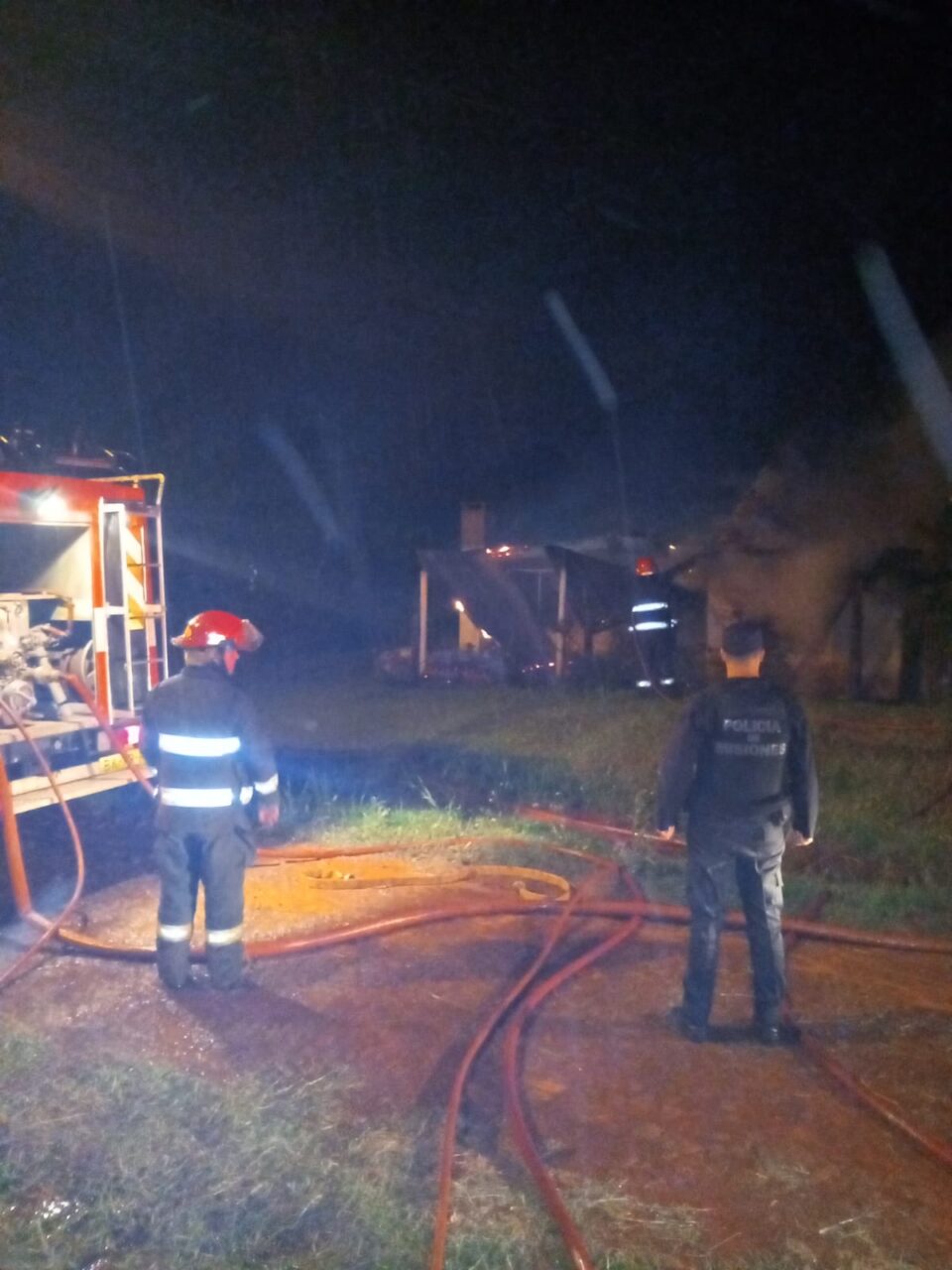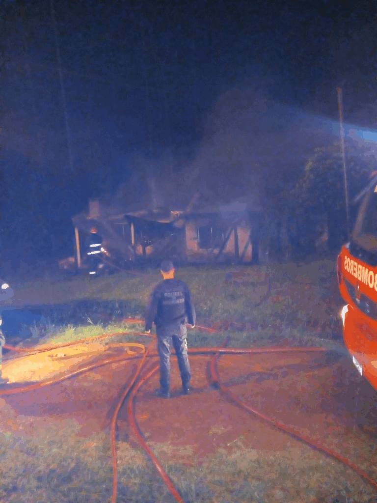La Policía de Misiones intervino en un incendio registrado esta madrugada en el barrio Tealera de la localidad de Dos de Mayo, donde una vivienda resultó totalmente consumida por las llamas.