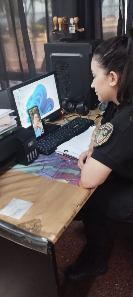 Durante las averiguaciones, los efectivos lograron establecer comunicación mediante videollamada con quien sería la pareja de Florencia. No obstante, al constatar que el hombre es una persona sorda usuaria de lengua de señas, el intercambio de información se volvió complejo. Por tal motivo, se solicitó la colaboración de la Oficial Ayudante Jimena Cassino, de la División Seguridad Costanera, quien es estudiante de Interpretación en Lengua de Señas Argentina.
