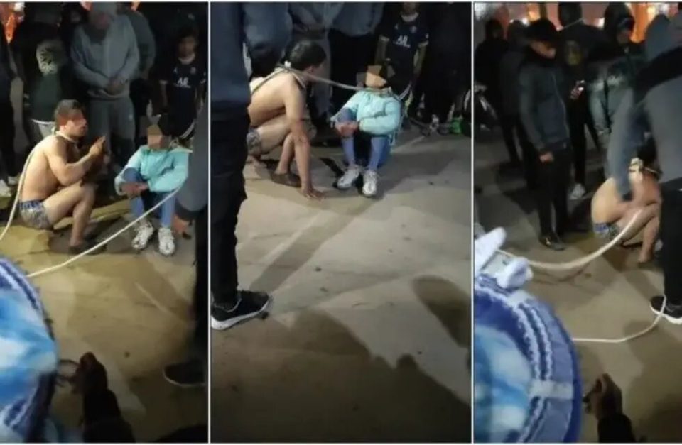 De acuerdo a las imágenes, el hombre se llevó la peor parte de la furia de los vecinos: lo obligaron a quitarse parte de su ropa, ambos fueron golpeados y humillados por la turba, acusados de cometer al menos tres robos sin que interviniera la policía.