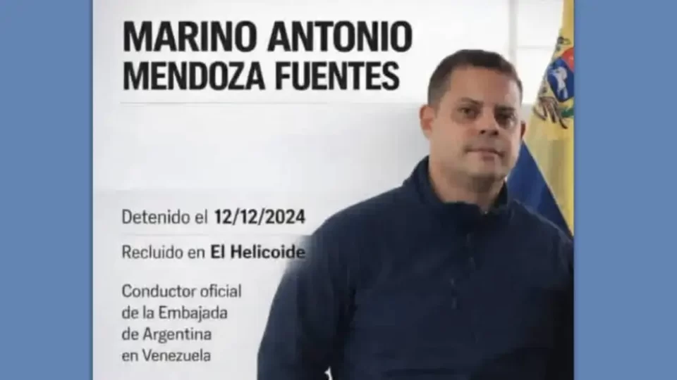 El régimen venezolano liberó este miércoles 21 a Marino Antonio Mendoza Fuentes, chofer oficial de la embajada argentina en Caracas, quien había permanecido detenido desde el 12 de diciembre de 2024 sin pruebas presentadas en su contra. Durante su arresto, Mendoza Fuentes estuvo recluido en El Helicoide, centro del Servicio Bolivariano de Inteligencia Nacional (Sebin), acusado de terrorismo por el gobierno de Delcy Rodríguez.