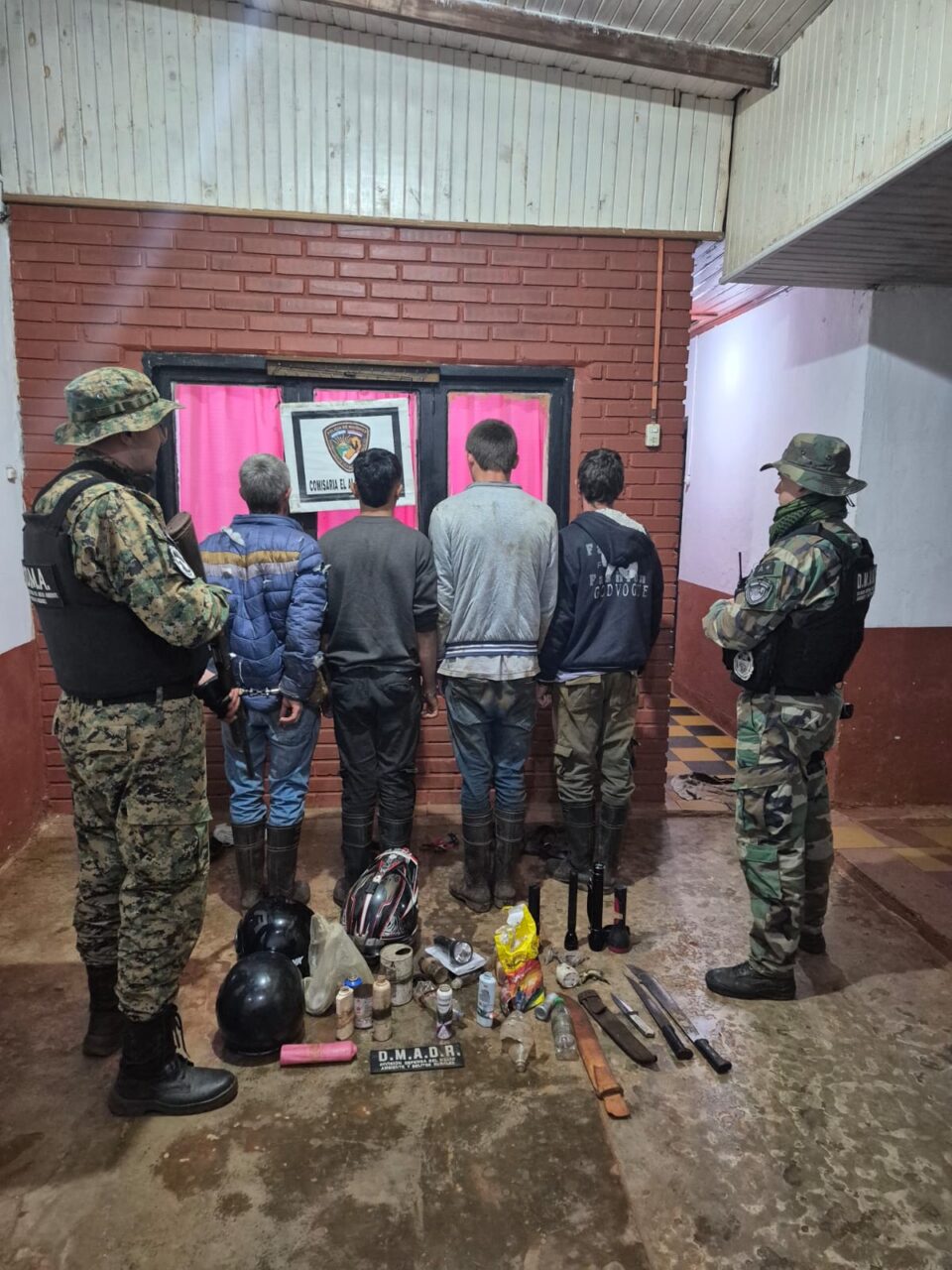 El procedimiento estuvo a cargo de efectivos de la División Defensa del Medio Ambiente y Delitos Rurales de la Unidad Regional VIII de San Vicente, quienes procedieron a la detención de Marcelo S. (40), José S. (47), Kevin José S. (20) y Ricardo Andrés Z. (19). Los involucrados habrían ingresado sin autorización a un predio privado declarado área natural de preservación protegida.